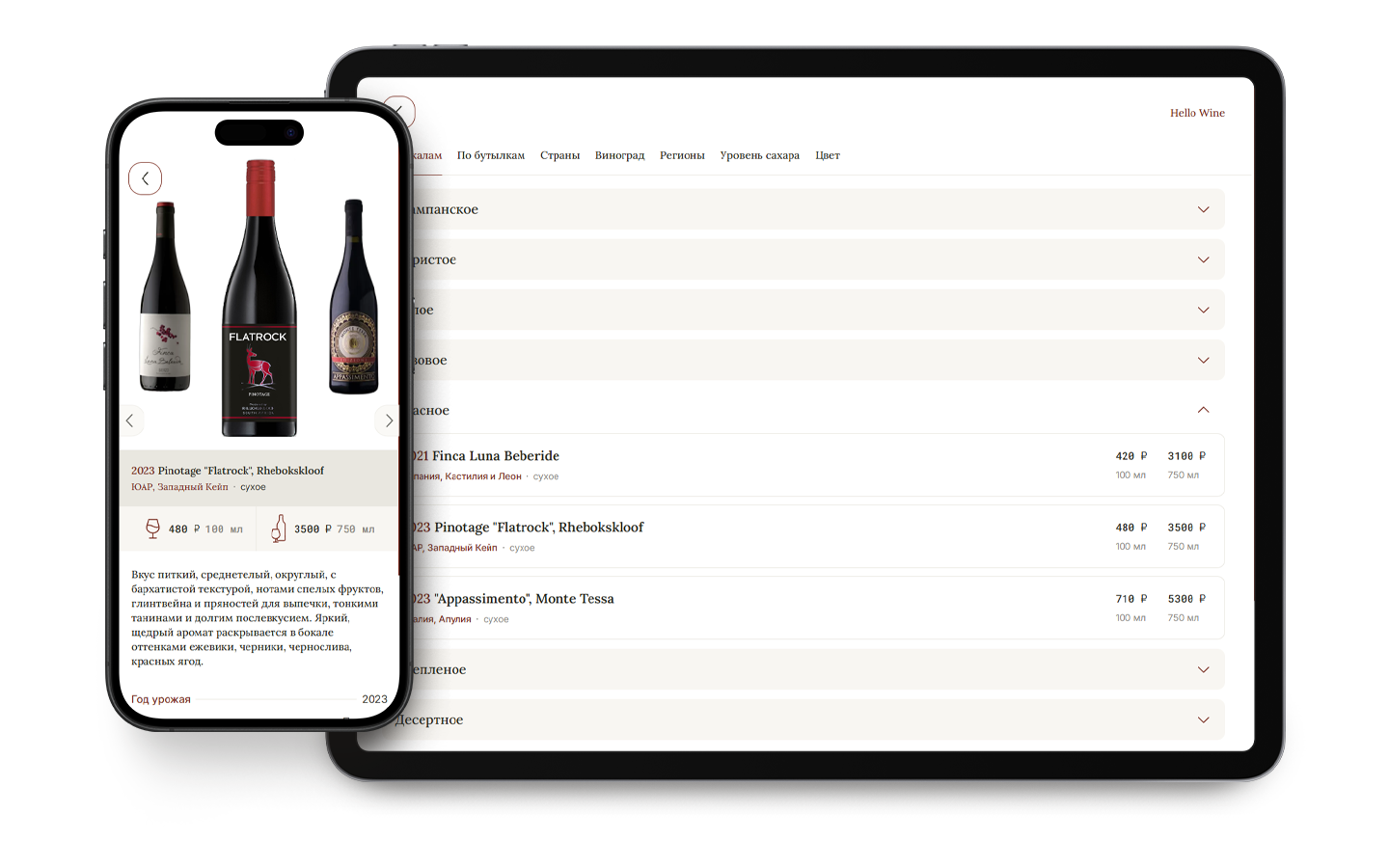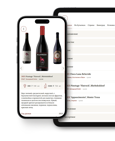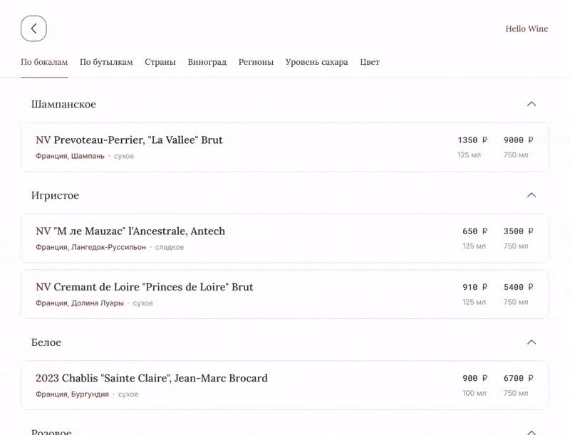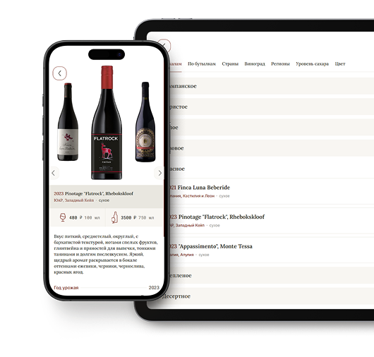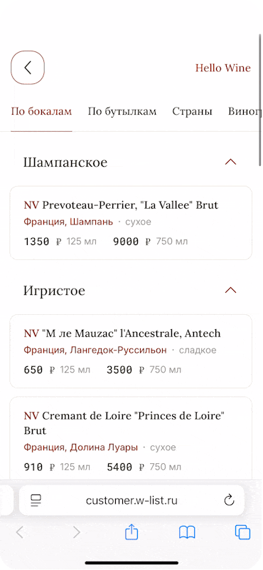 Показывайте гостю только доступные для заказа позиции и выделяйте новинки и популярные вина.